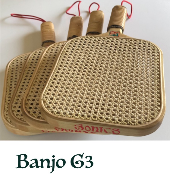 Imagine playing doubles on your home driveway​ or backyard personal court without disturbing all the neighbors for a hundred foot radius and beyond. The Finch paddle performs more like a tennis racket. In the Banjo G3 model you will hear a pleasant, almost musical, response when the whiffle ball makes contact!